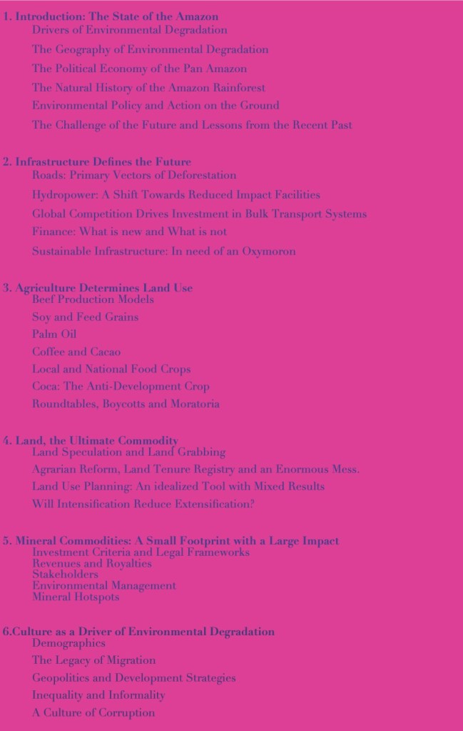 The broad scope and descriptive detail of the narrative provides the reader with an understanding of the synergies among the multiple complex phenomena that threaten the conservation of the Amazon, as well as an objective analysis of the alternative production models and regulatory reforms that are essential to bend the arc of history and save the most important ecosystem on the planet.