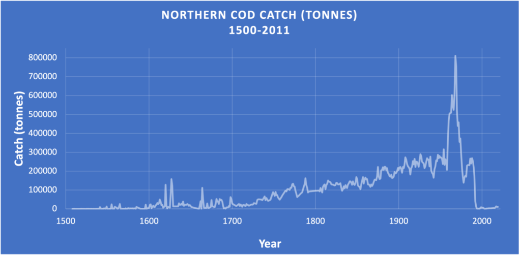 [5] Data from Rebecca Schijns et al., ‘Five Centuries of Cod Catches in Eastern Canada’, ICES Journal of Marine Science 78 (8) (2021): 2675–83.