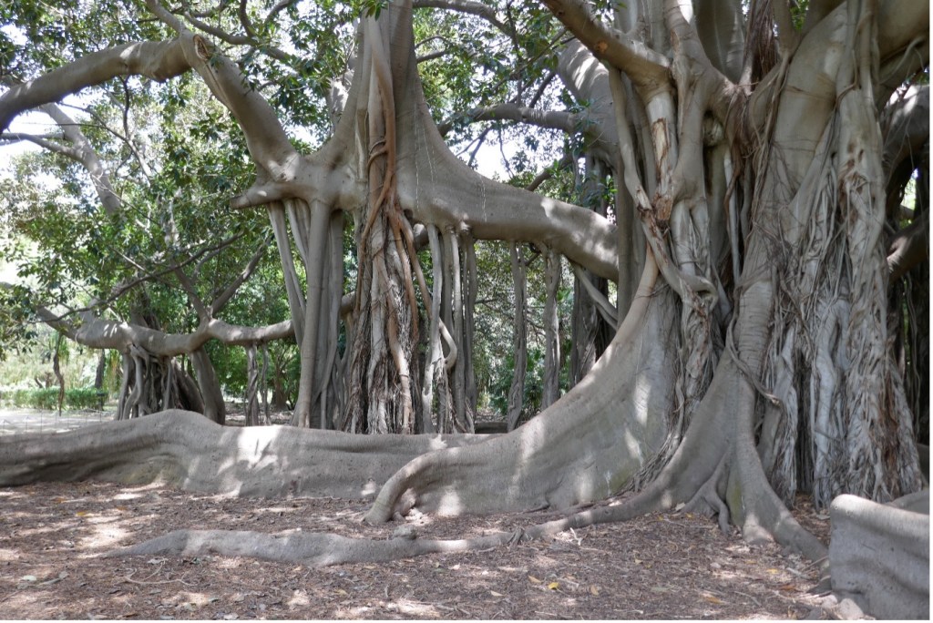 The experiences from the event that come back to me again and again are the plants. For example, the momentous Moreton Bay Fig (Ficus macrophylla f. columnaris). Introduced to the garden in 1845 it now has a crown of over 3,000 m2 and has to be controlled to prevent it becoming the only plant in the garden. This tree produced the many other specimens that can be seen taking over parks and gardens around Palermo.