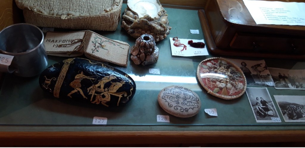 In Trikeri island, the women ‘assigned rotating tasks’ to make their exile on the island liveable: using asphodels they stuffed ‘mattresses and pillows’ and made ‘hats, mats and baskets’; using olive tree barks they ‘carved spoons and dishes’ and made decorative ‘wall hangings’; from pine trees, they took ‘branches and cones’ to kindle small hearths; ‘risking disciplinary measures’ the women would collect ‘little blue flowers’, stick them in ‘artful arrangements’ and send them as gifts to their ‘loved ones’.[11] Building upon and extending the notion of ‘flower power’,[12] we can say that in this case plant power for the displaced acted not only as a form and tool of peaceful resistance, but also as a tool for collective emplacement and survival,[13] resilience, adaptation and dignity.[14]